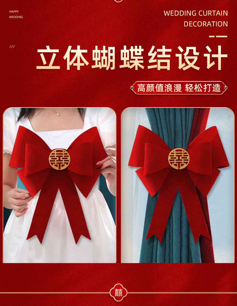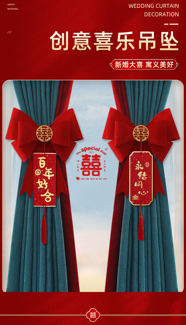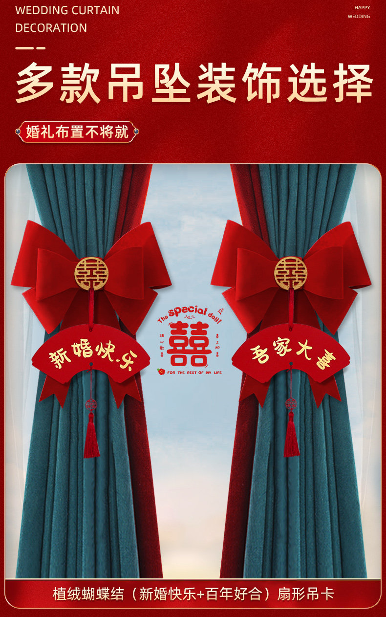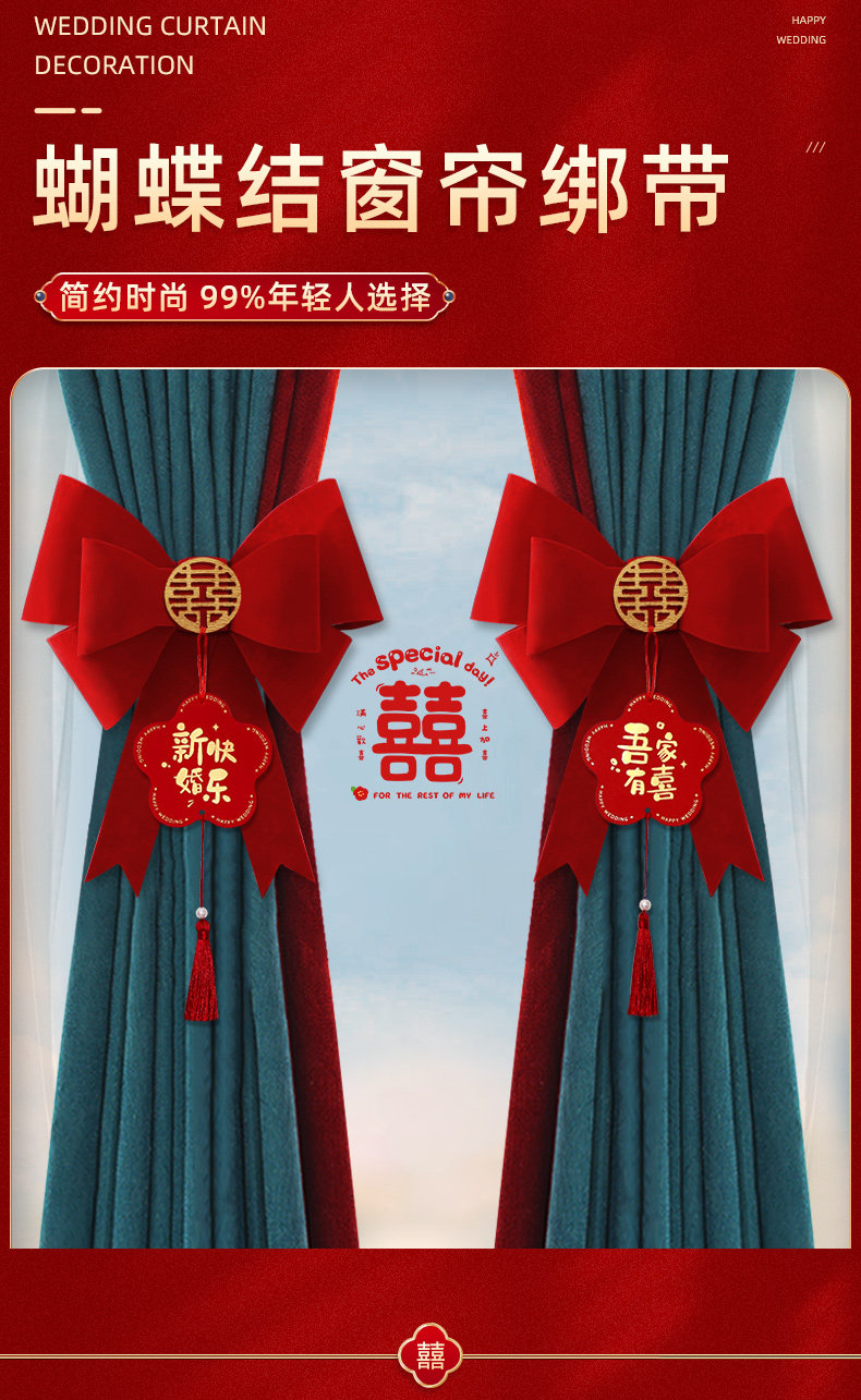 结婚窗帘绑带装饰婚房布置新房客厅