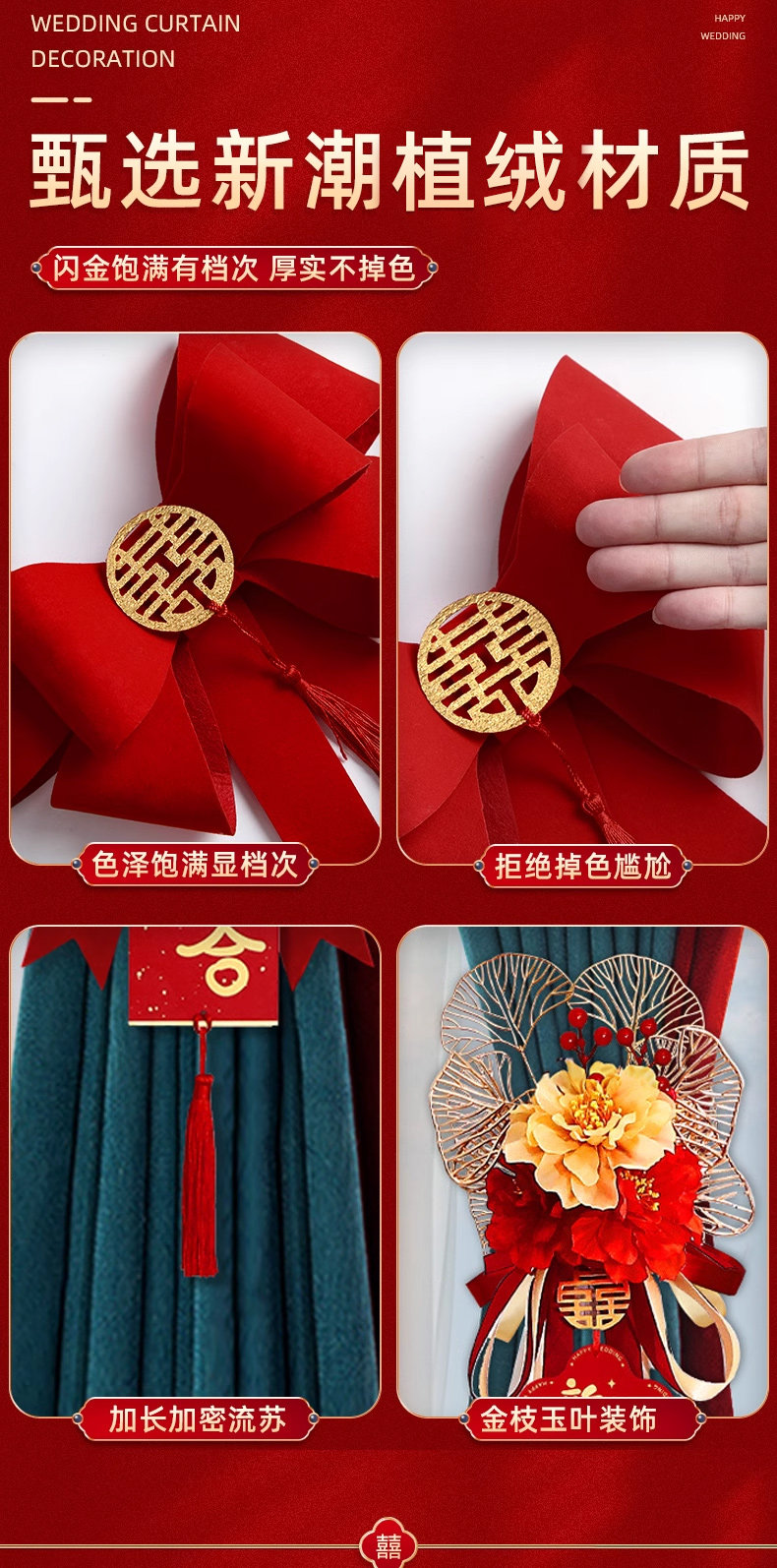 > 结婚窗帘绑带装饰婚房布置新房客厅