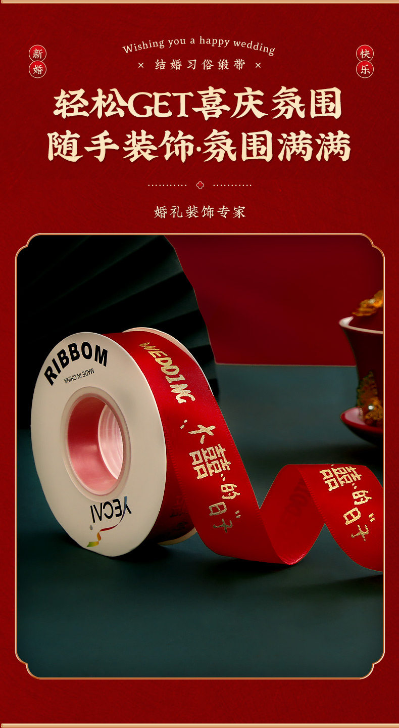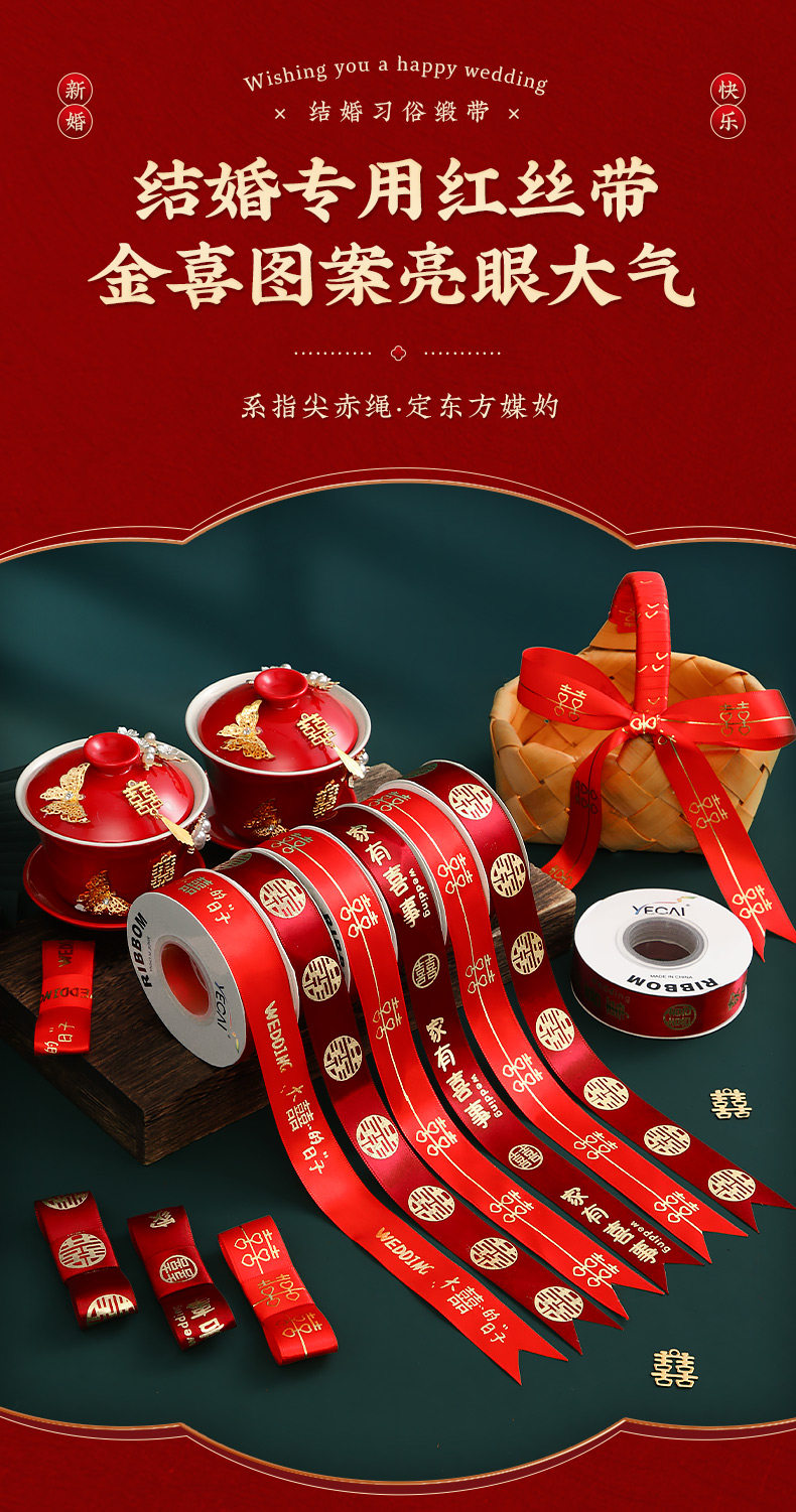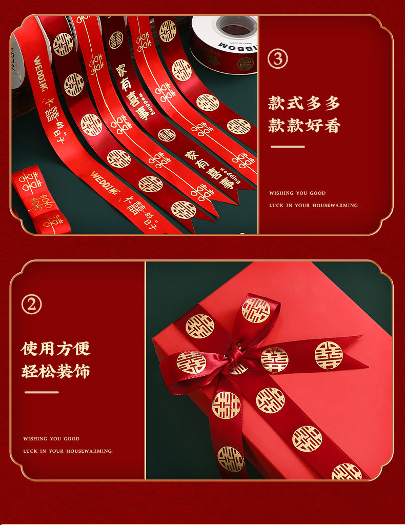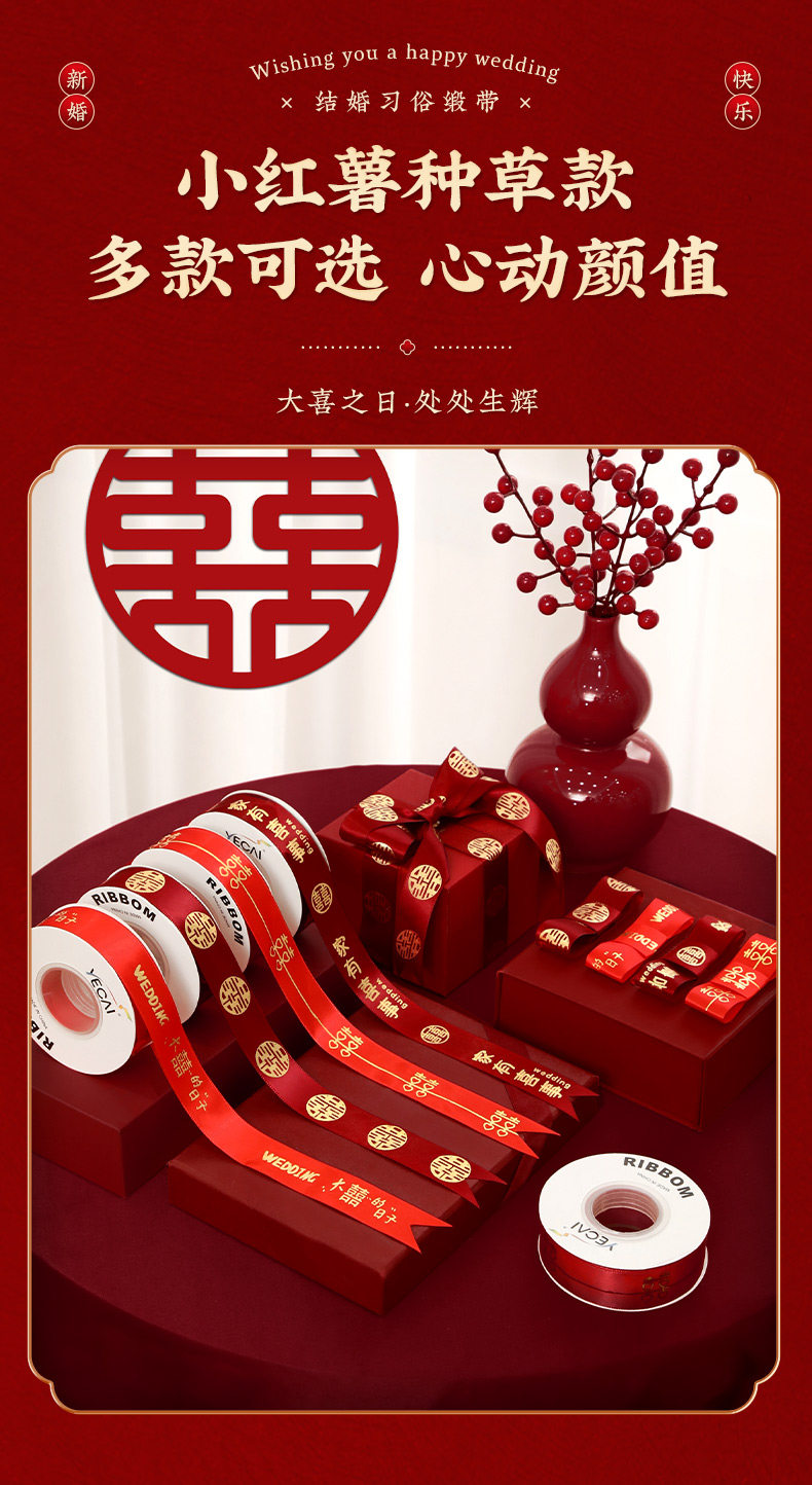 > 结婚红丝带喜庆陪嫁包装扎带diy材料
