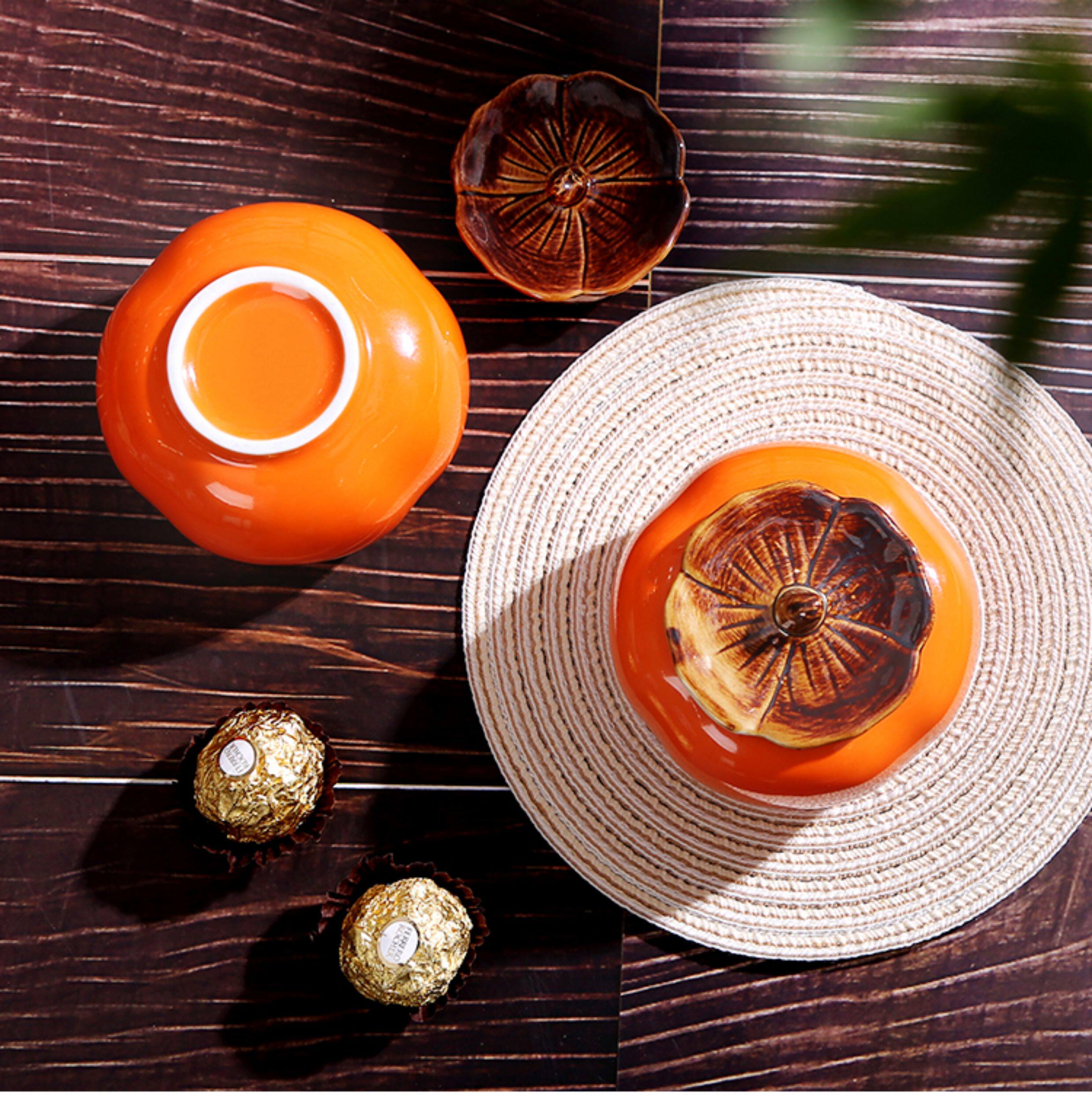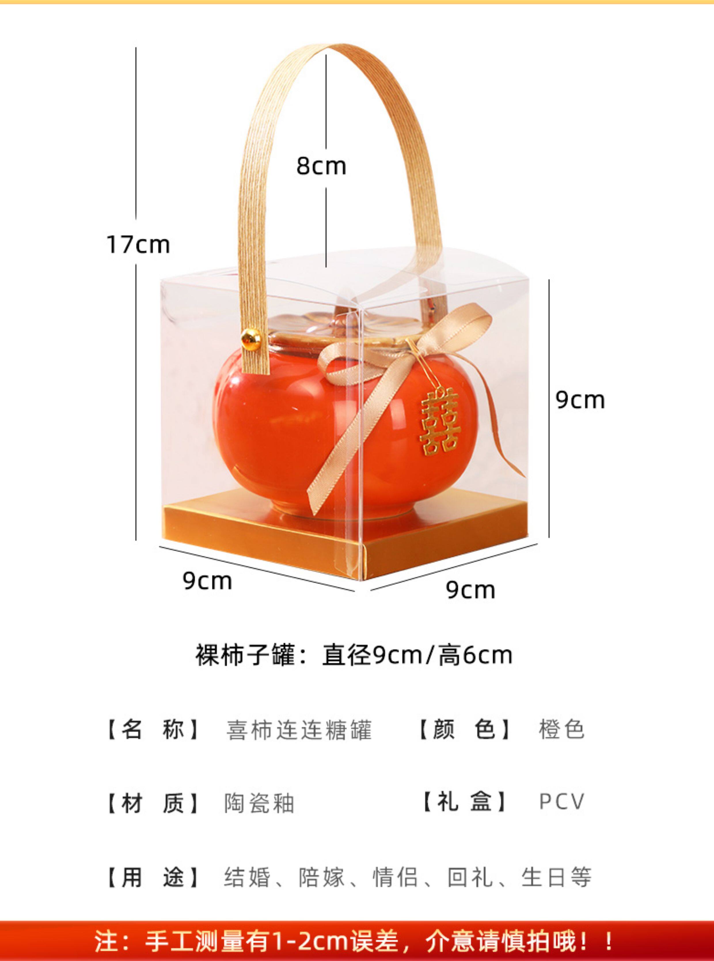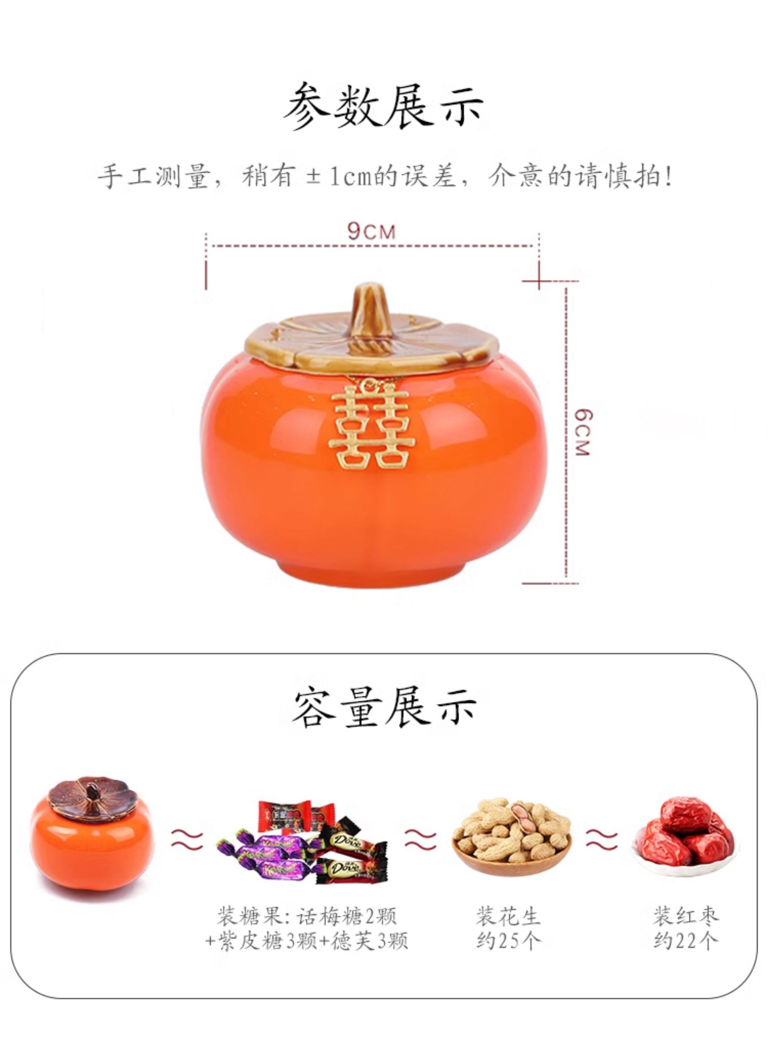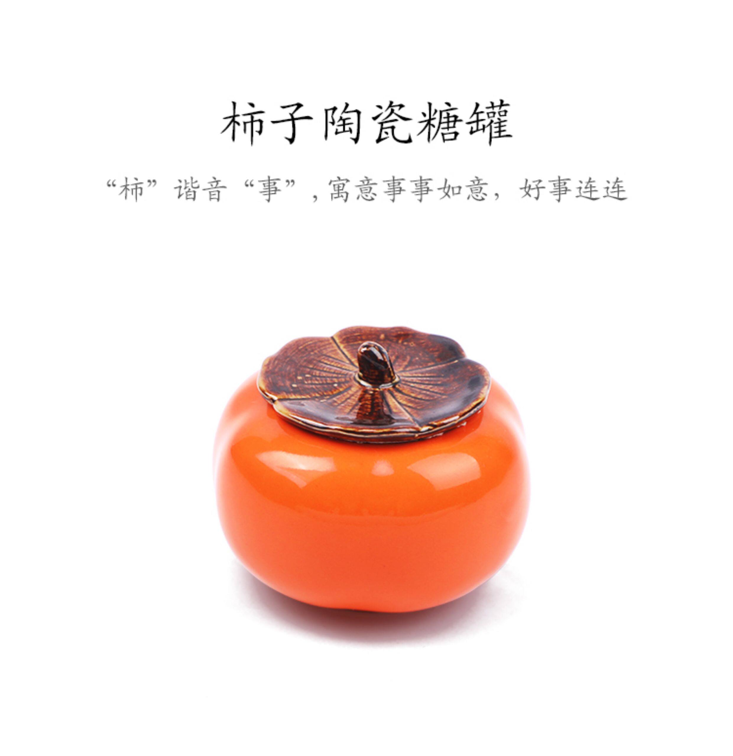 > 柿柿如意柿子罐摆件糖罐结婚喜糖盒子陶瓷订婚糖果