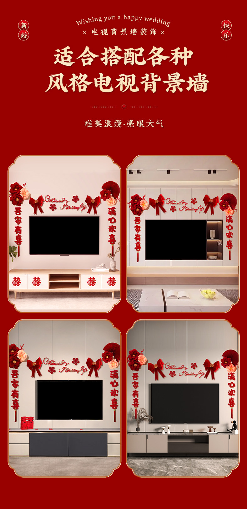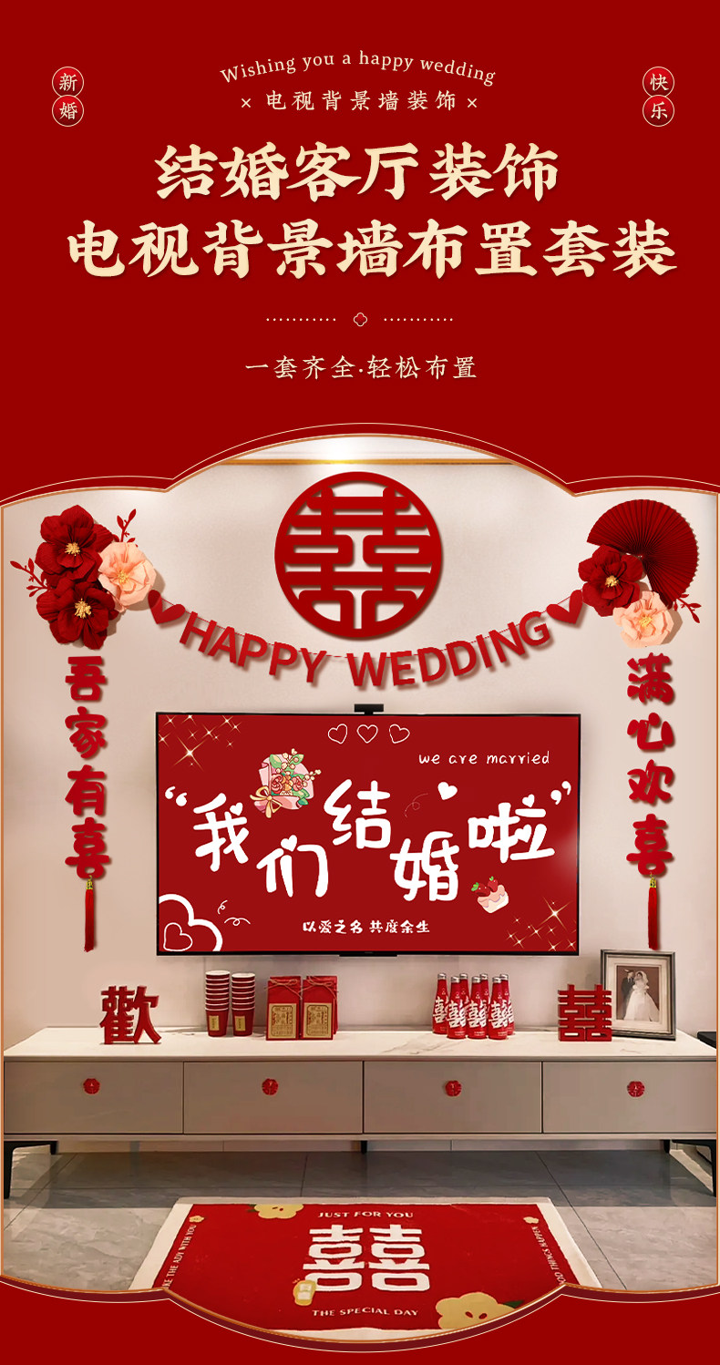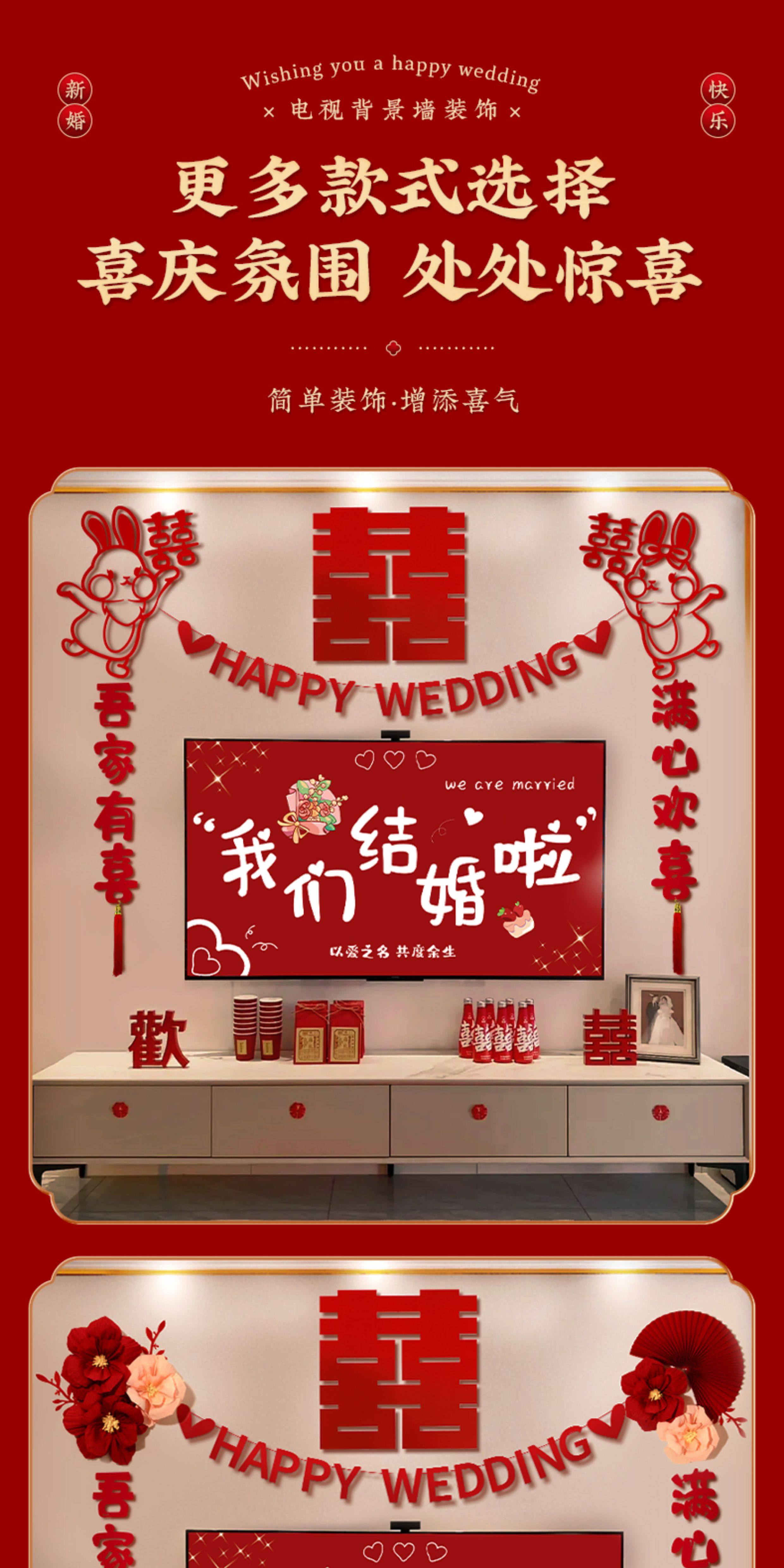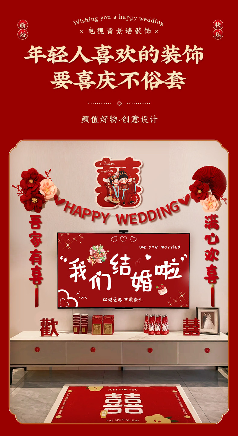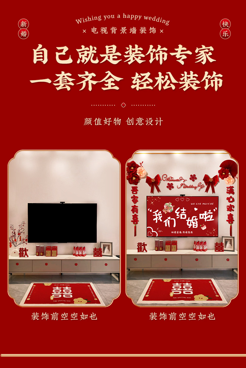 电视背景墙装饰结婚布置婚礼婚房男方新房
